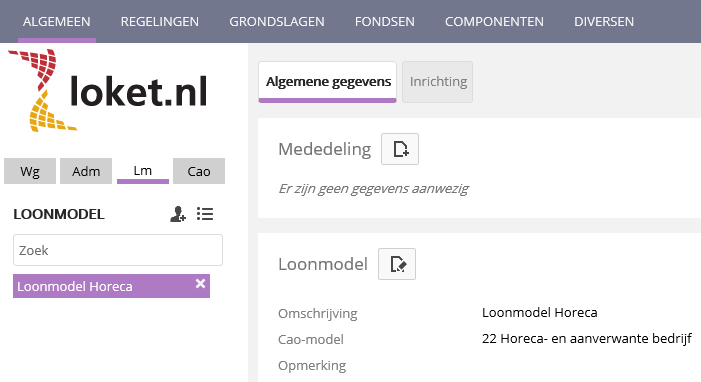In Loket Classic klik je op provider je aan de linkerkant van je scherm op het tabblad Lm. Met behulp van het zoekveld of het icoontje kun je het gewenste loonmodel oproepen.