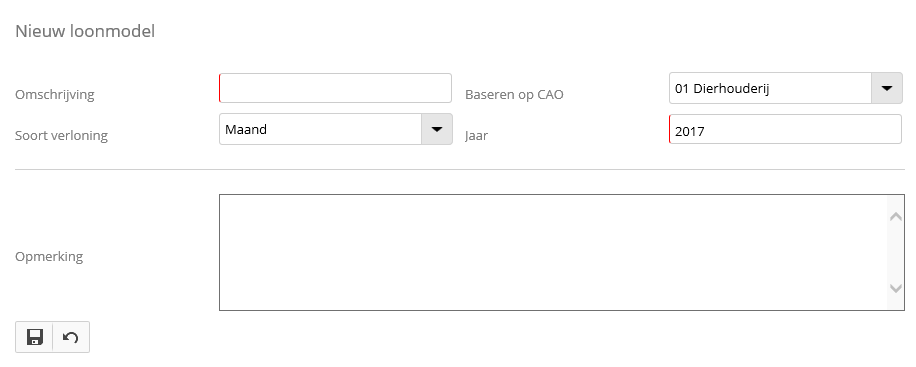 Klik op het icoontje om een nieuw loonmodel toe te voegen. Met het pop-upvenster wat verschijnt, kun je een nieuw loonmodel toevoegen.