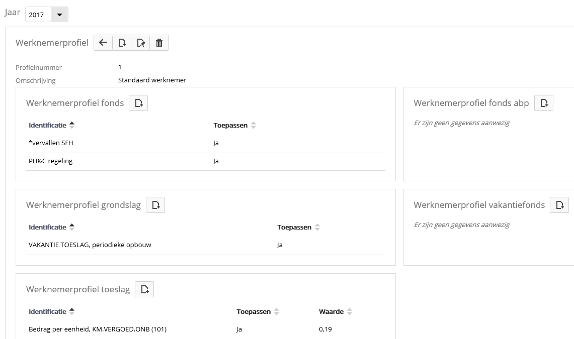 Onder een loonmodel of werkgever kunnen profielen worden gedefinieerd. Wordt bij het invoeren van een nieuwe werknemer het profiel geselecteerd dan zullen de regelingen uit het profiel direct geactiveerd worden.