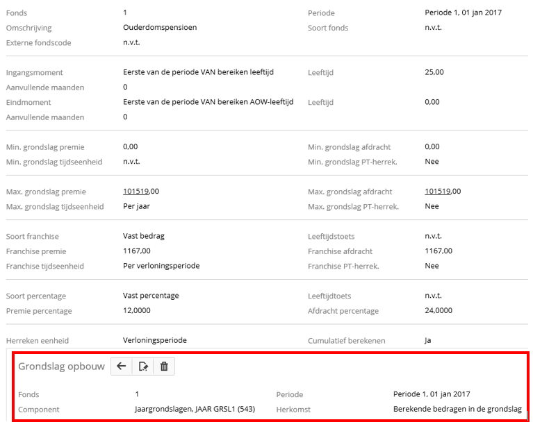 Nadat je de rekenregel gedefinieerd hebt, moet je bij het fonds waar dit van toepassing is de resultaatcode van de rekenregel opnemen onder Grondslag opbouw. Hiermee heb je aangegeven dat de grondslag voor het fonds bepaald moet worden volgens de gedefinieerde rekenregel. Iedere periode kan de rekenregel opnieuw worden uitgevoerd via de optie Automatische processen activeren -> Jaargrondslag fondsen bepalen.