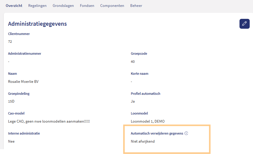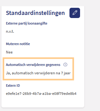 • Administratieniveau: Niet afwijkend. Wil je automatische verwijdering voor alle administraties, zet de instelling op provider-niveau op Ja.