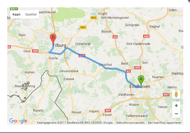 Kies voor Toon route om het bijbehorende kaartje vanuit Google maps als pop-up te tonen.