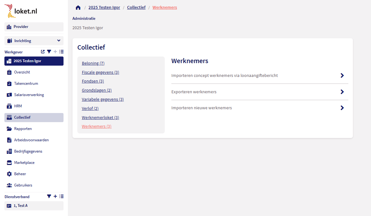 In Loket kies je voor Collectief -> Werknemers.