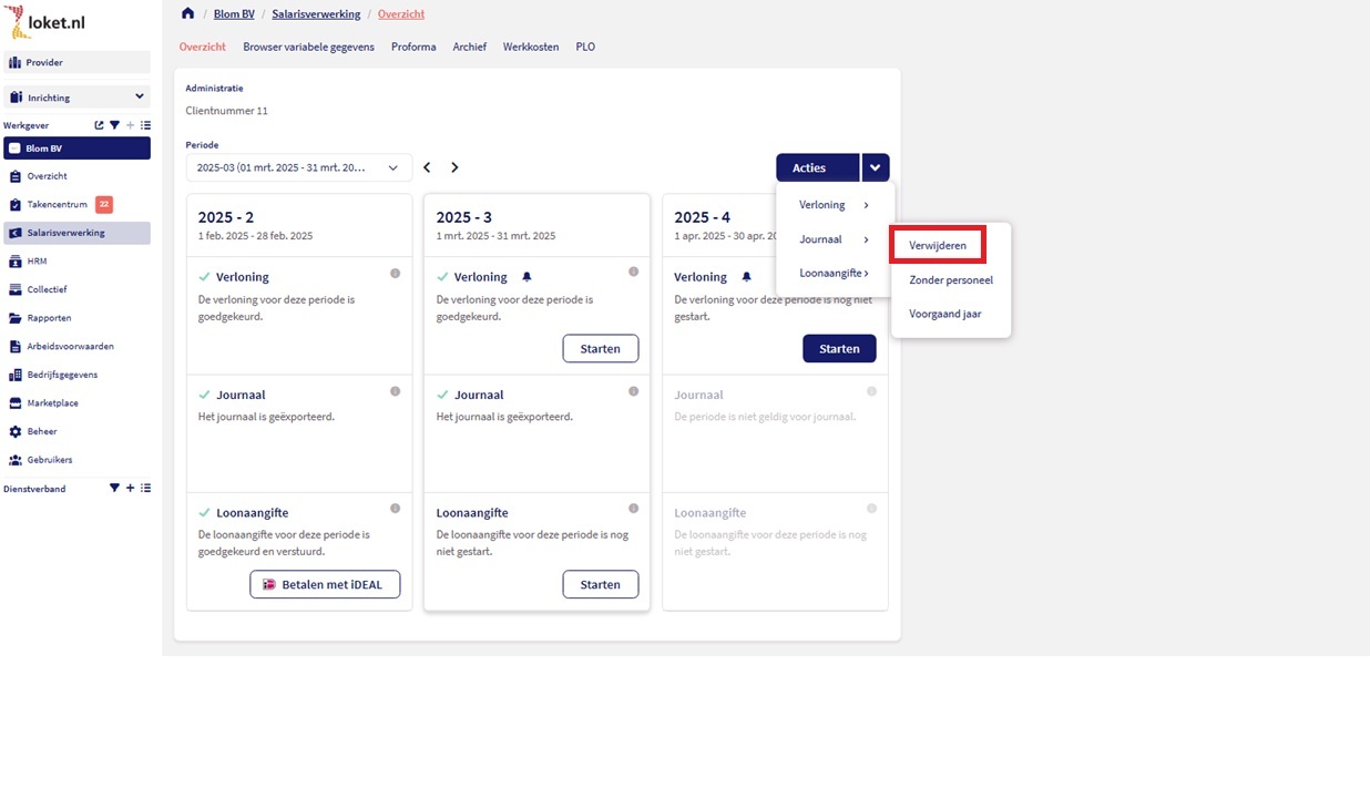 In Loket is onder Salarisverwerking -> Acties > Verloning de optie Verwijderen loonrun beschikbaar.
