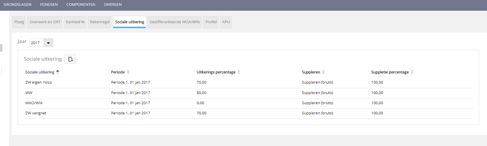 - Uitkeringspercentage: Hierin staat het uitkeringspercentage van de betreffende sociale uitkering. Dit percentage kan worden overschreven.