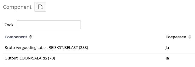 In het scherm Componenten zijn, naast Loon/Salaris (70) ook de “vaste” betalingen, inhoudingen en fiscale bijtellingen/aftrek opgenomen.