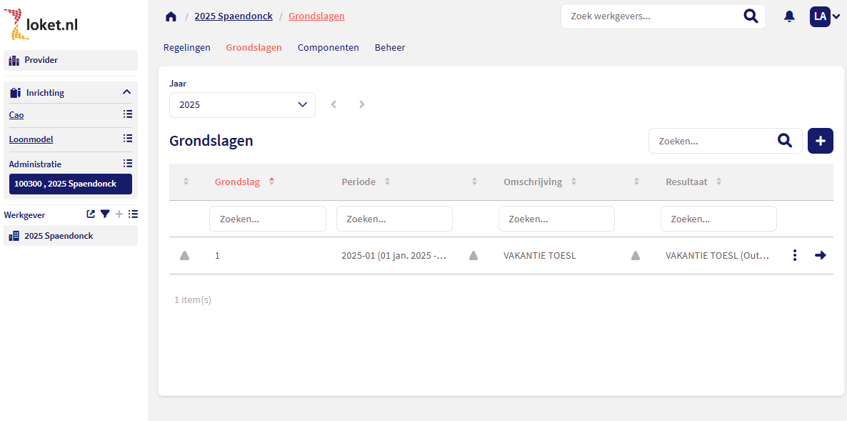 We bouwen steeds meer zaken van het ADM/LM-niveau over van Loket Classic naar Loket. Dit zodat het overschakelen naar Classic steeds minder nodig is voor een AK-gebruiker. Deze release leveren we het tabblad Grondslagen op. Deze vind je terug onder Inrichting - Administratie - Grondslagen.
