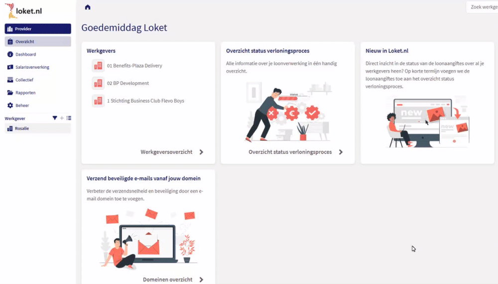 We hebben het Administratiefilter toegevoegd aan Loket, te vinden bij de lijst werkgevers. Dit filter stelt je in staat om efficiënt een specifieke groep werkgevers te selecteren op basis van CAO, Loonmodel, Groepsindeling en/of groepscode.