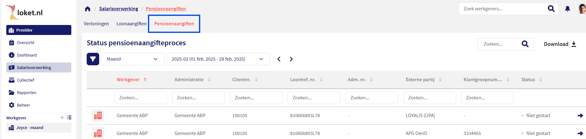 2. Pensioenaangiftes toegevoegd aan Status Verloningproces