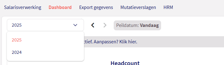 Heb je bijvoorbeeld in het dienstverbandfilter gevuld dat dat je alleen werknemers wil zien die vanaf dit jaar actief zijn (2025), en je filtert op 2024 in het dashboard, dan verschijnen er uiteraard geen gegevens.