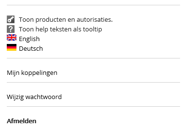 - In het instellingenmenu klik je op Toon producten en autorisaties. Hierdoor verschijnen er door de hele applicatie sleuteltjes bij alle functionaliteiten in Loket.
