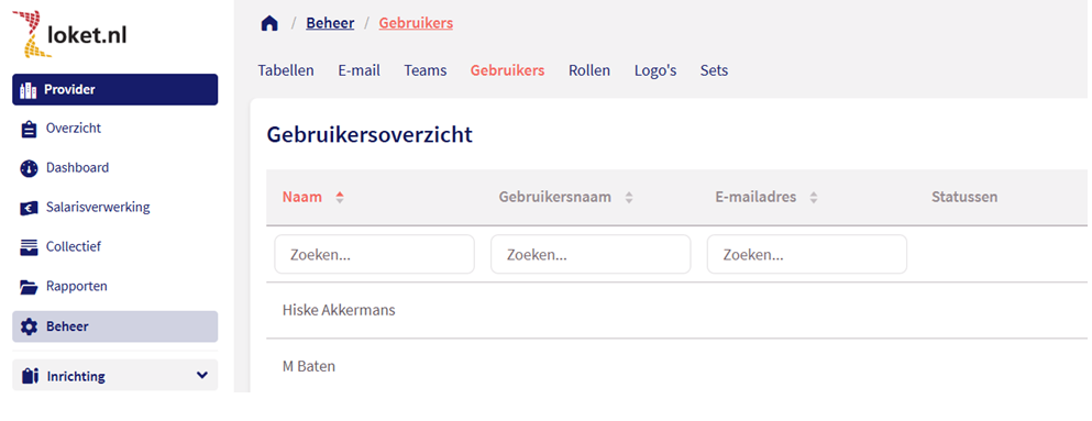 In Loket kun je op providerniveau onder Beheer -> Gebruikers de gebruikers van het kantoor aanmaken.