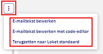 Vervolgens is het mogelijk om de e-mailtekst te onderhouden. De onderhoudsoptie kun je starten door op de "verticale drie puntjes" te klikken. Voor het onderhoud heb je drie mogelijkheden: