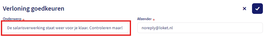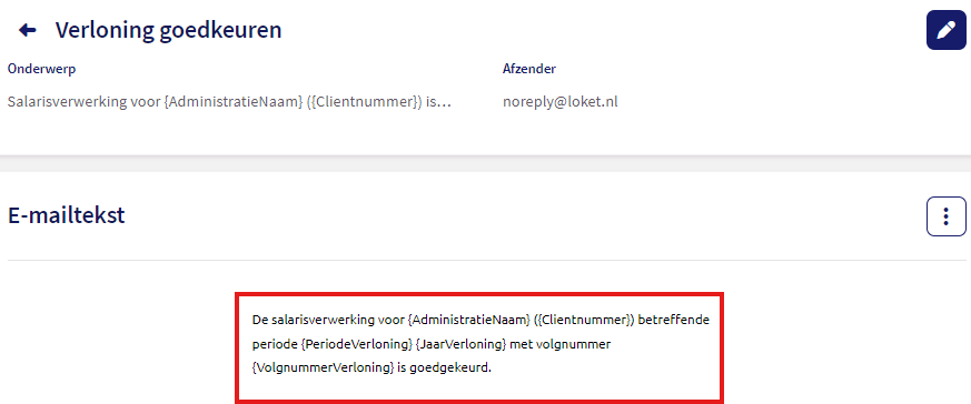 In onderstaand voorbeeld gaan we de e-mailtekst "Verloning goedkeuren" aanpassen.